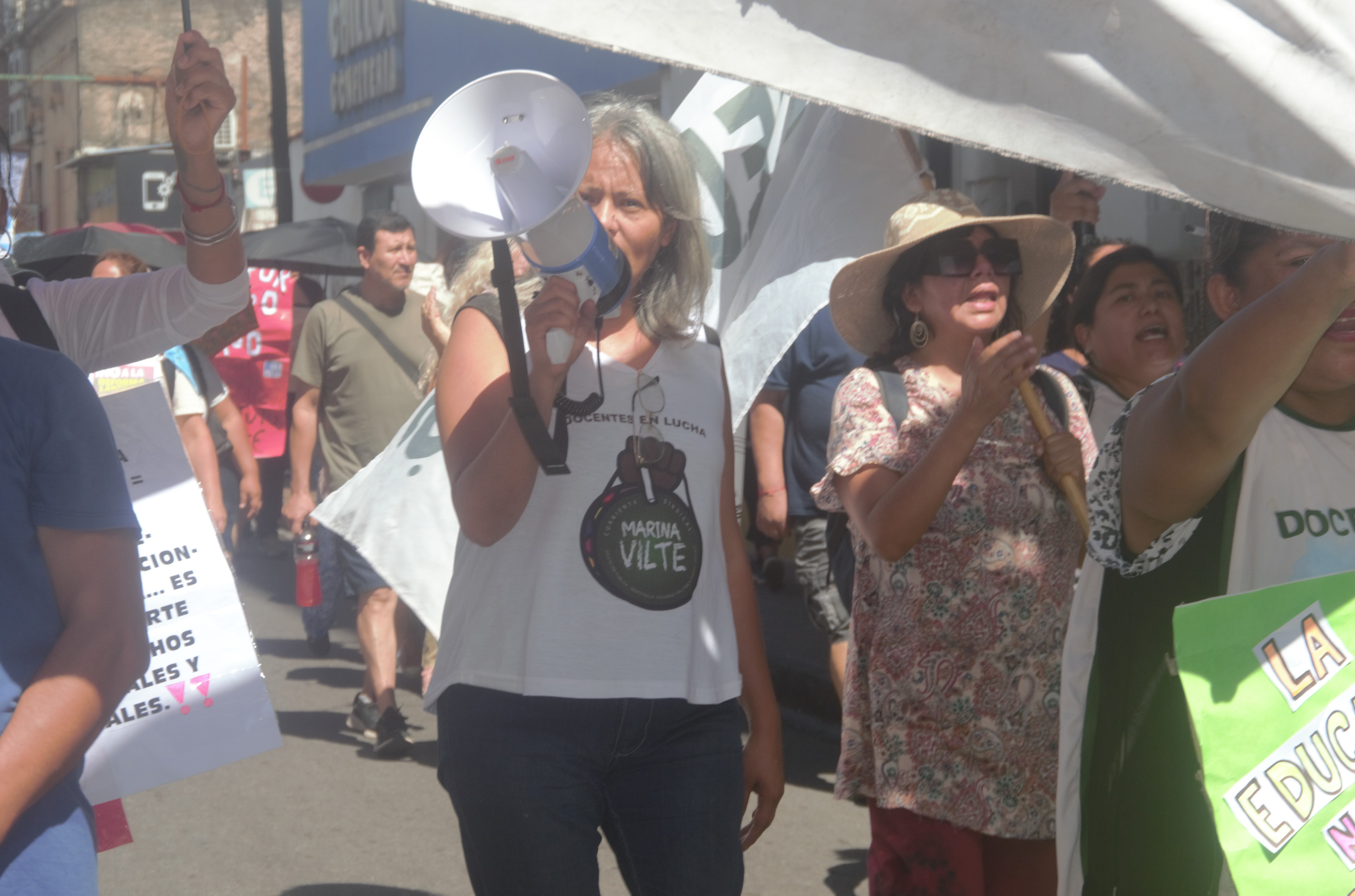 Esta parte de la movilización, limitada en número por el paro de la UTA que afectó el transporte, se identificó bajo la consigna: “Aumento salarial ya, no a la reforma laboral de Milei”. Con ello, se tendió un puente necesario entre lo que implica el modelo económico del gobierno nacional —que lleva implícita la reforma laboral— y su aplicación en las provincias, donde gobernadores aliados como Carlos Sadir no solo aportan votos para la aprobación de las medidas, sino que replican con rigor la receta del ajuste.