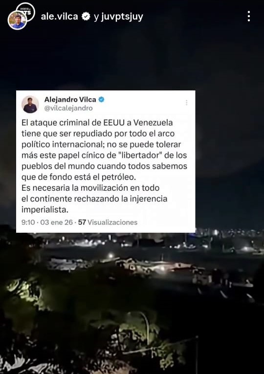 Desde el otro extremo, el diputado provincial Alejandro Vilca (PTS-FIT) calificó el ataque como “criminal” y exigió un repudio político internacional. Su mensaje en redes sociales apuntó directamente al trasfondo económico de la intervención: